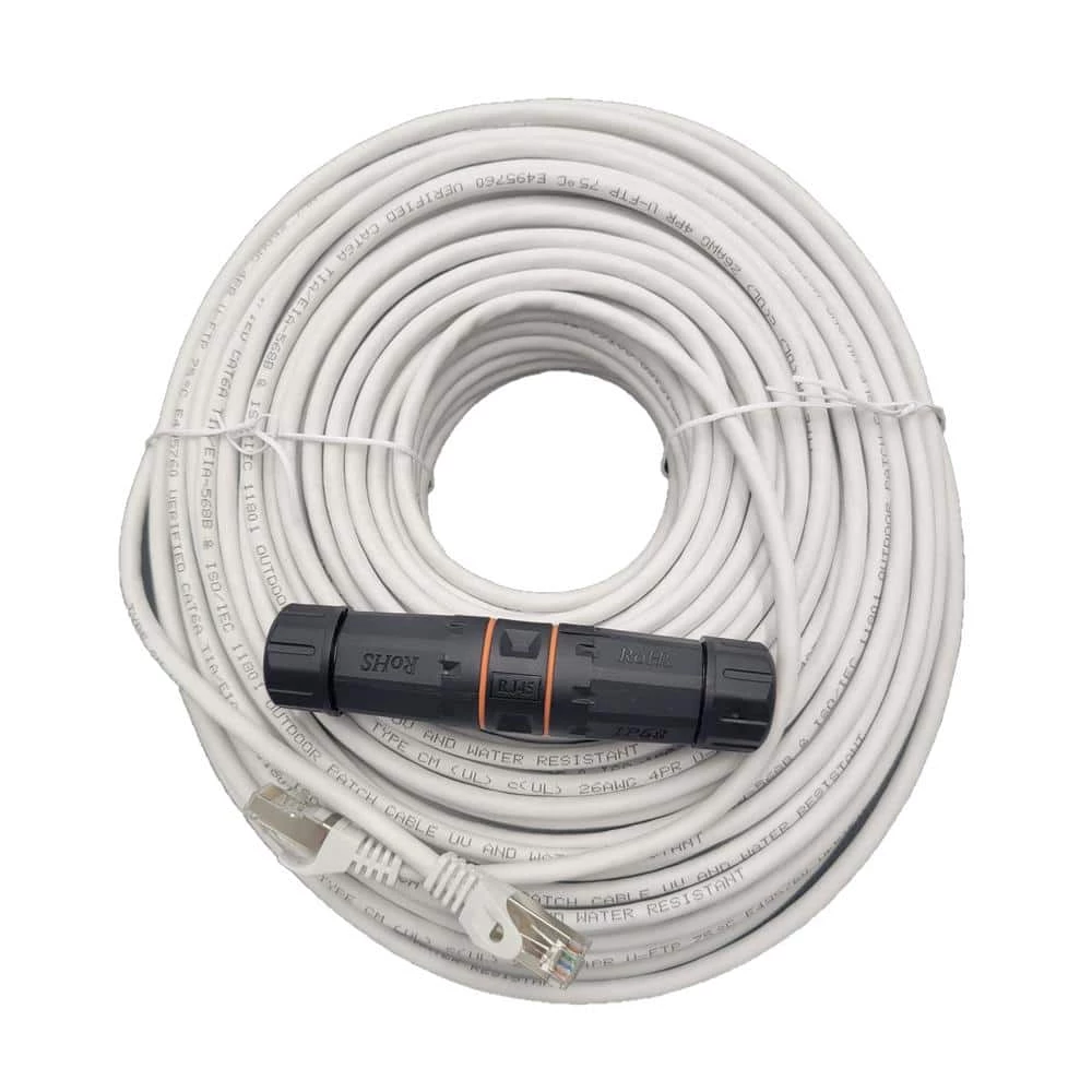 100 ft. CAT6A Industrial Outdoor-Rated Shielded Ethernet 26 AWG White-Cable Kit with Waterproof Coupler by Micro Connectors, Inc