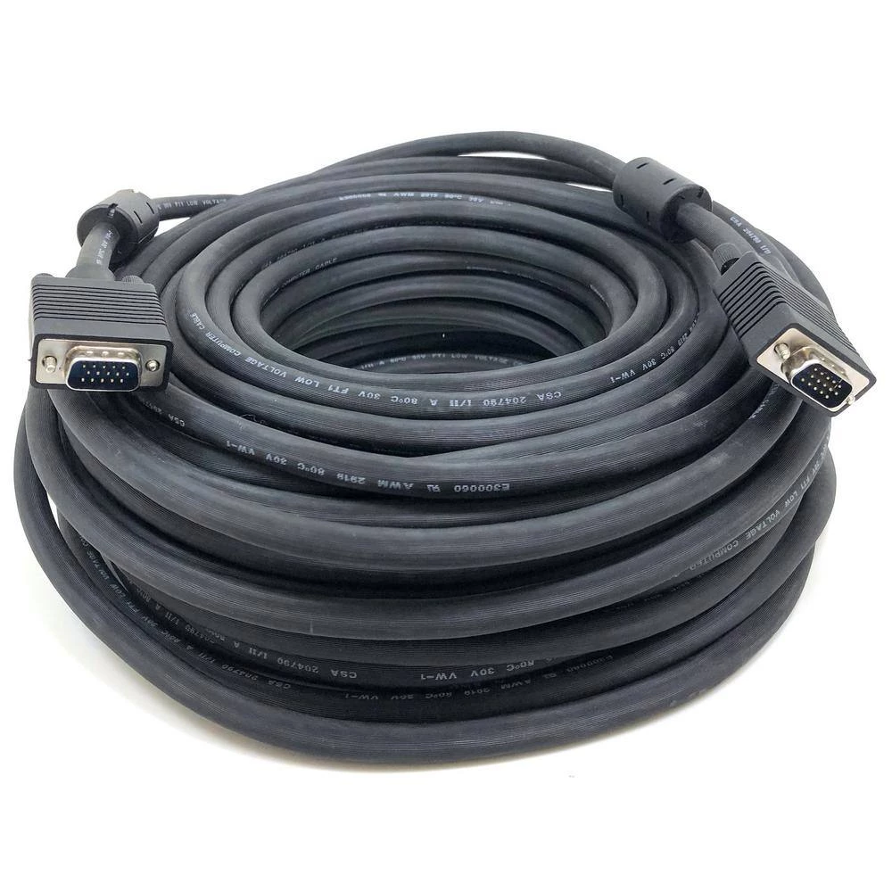 100 ft. X/S/VGA HD15 Male To Male Cable Double Shield with Ferrites. This high quality SVGA / XVGA / UXGA extension cable features High Resolution and triple shielding to maximize signal integrity. Equipped with ferrite beads at both ends to reduce noise spike.