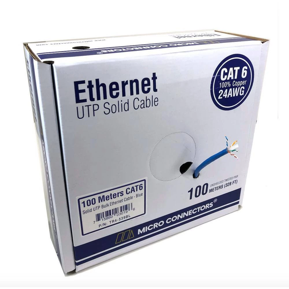 The Micro Connectors Cat 6 Solid UTP bulk Ethernet cable is perfect for your office of warehouse cabling project. Our cable allows for maximum performance while minimizing electromagnetic interference/radio-frequency interference (EMI/RFI) and almost eliminating alien crosstalk (AXT). Suitable for fast, Gigabit, and 10-Gigabit Ethernet and supports bandwidths of up to 550 MHz.