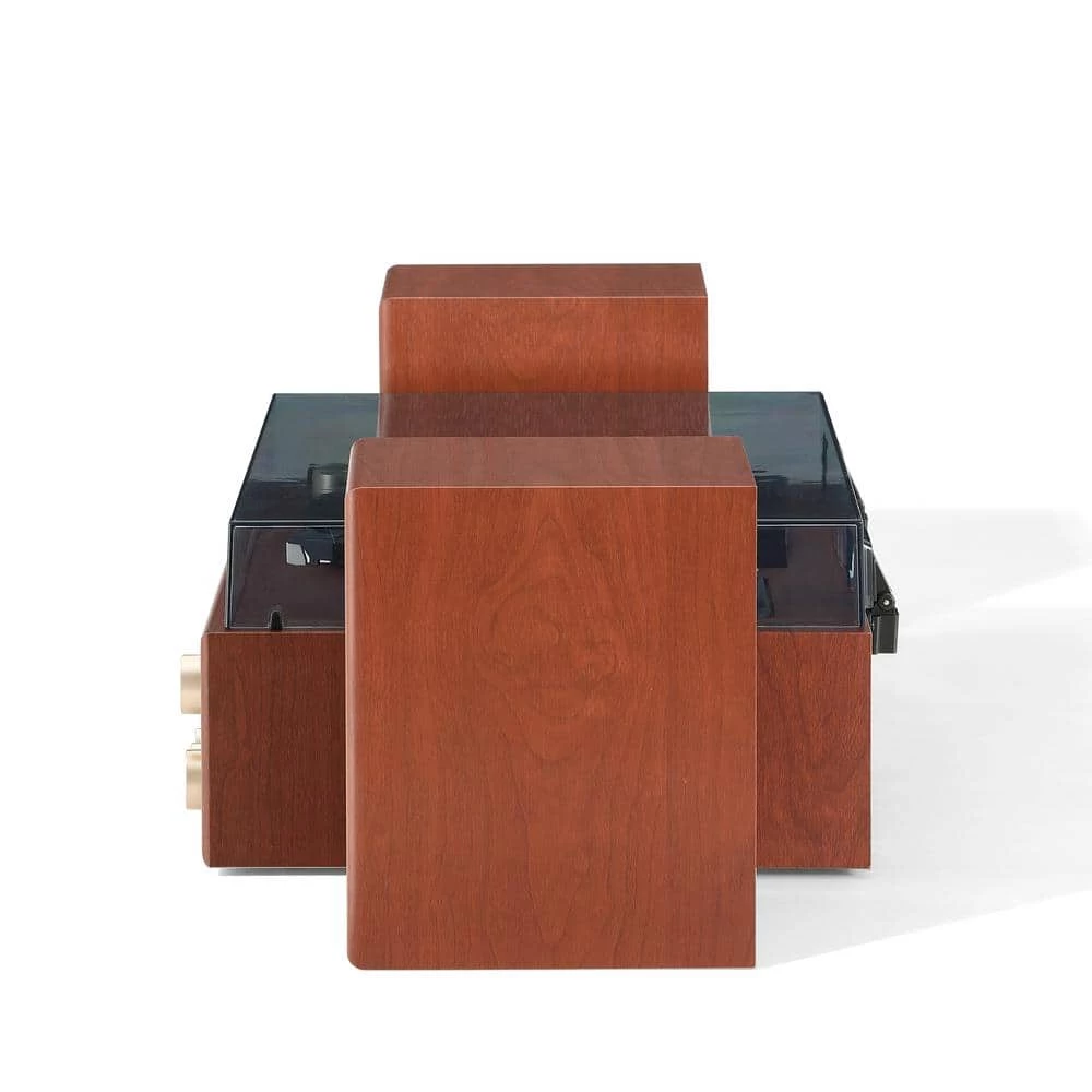 1975 was a memorable year: VHS vs. Beta, things were rosy for the big red machine, the Thrilla in Manila was a knock out, and, oh yeah.. a war ended. The 70s also had some pretty sweet looking electronics, so we cranked up some Kiss and got inspired. Meet the Crosley 1975T Entertainment System. This awesome turntable looks like it came right out of your hip uncle’s teenage bedroom. The 1975 is ready to rock and roll all night and party every day right out of the box. Unpack, connect the matching speakers, plug in, throw on your favorite vinyl, adjust the bass/tremble and crank it up. Play 33 1/3 and 45 RPM records, Cds or even tune in to your favorite AM/FM radio stations. Of course, we had to include a built-in Bluetooth receiver as well, so you can listen to all of your favorite digital music wirelessly. If the neighbors ever bang on the wall, don’t worry.. there’s always a headphone jack you can use, but not without reminding them, “if it’s too loud, you’re too old.”