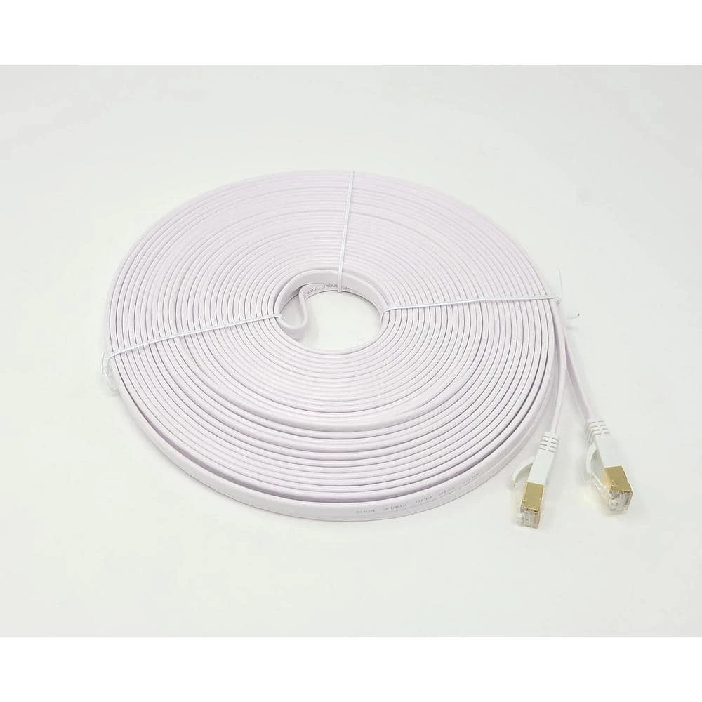 50 ft. Cat 7 Shielded RJ45 Flat Patch 32 AWG Cable with Cable Clips, White by Micro Connectors, Inc