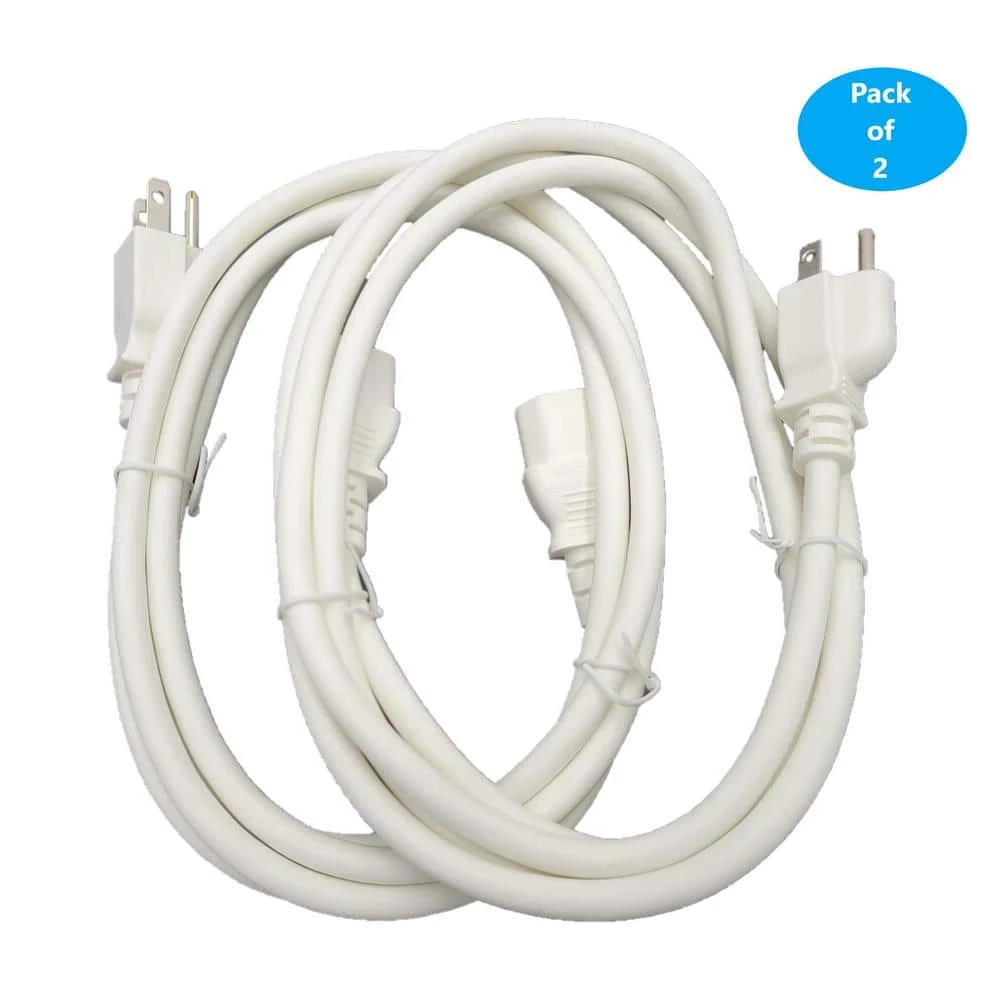 6 ft. Universal AC Power Cord Ul Approved. NEMA 5-15P to C13 Black/2-Pack. 18 AWG (American wire gauge) universal power cord.