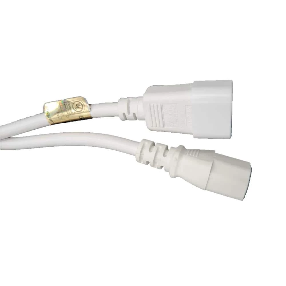 6 ft. AC Power Extension Cord UL Approved C13 to C14- White/2-Pack. 18 AWG gauge Power cable is rated for 10 Amp. Superior Construction: manufactured in compliance with strict RoHS specifications. Ul listed lifetime Warranty.