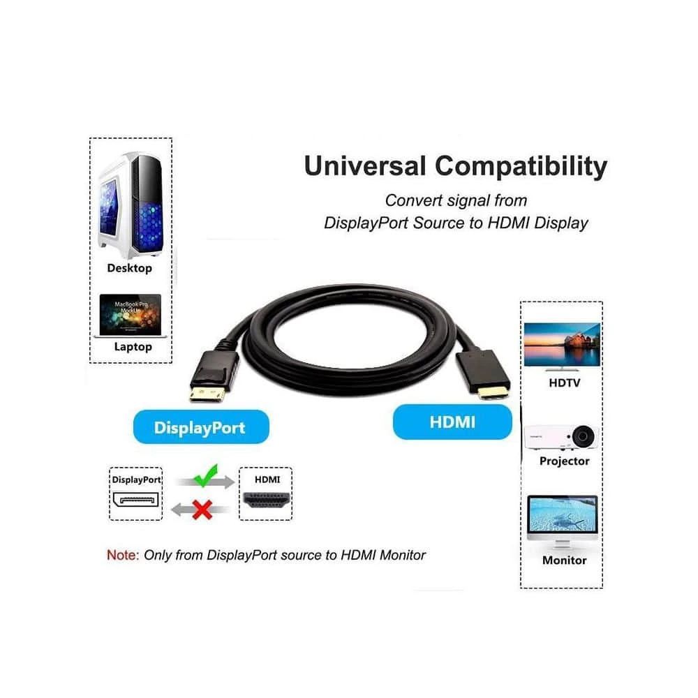 Compliant with DP1.2 specification. Connect a DisplayPort (DP, DP plus plus, DisplayPort plus plus ) equipped computer to a HD monitor or projector with HDMI connector. Support HBR bandwidth and resolutions up to 4K x 2K at 30 Hz. Gold-plated connector provides superior transmission, high reliability and durability. Deliver high-definition audio and video signals from your computer to a monitor for video streaming or gaming. DisplayPort connector with latches keeps cable securely plugged in. All relevant materials are complied with RoHS directive.