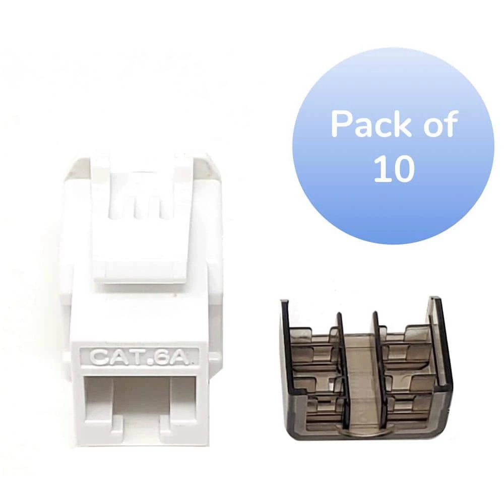 Micro Connectors Cat. 6A Punch Down Keystone Jack/White 10-Pack. This Cat6a punch down keystone jack provides excellent performance for up to 10Gigabit network applications. Compatible with our wall plates, patch panels and surface mount boxes.