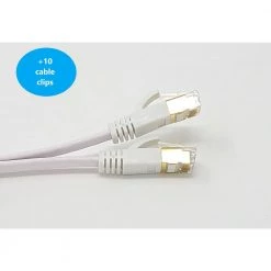 25 ft. Cat 7 Shielded RJ45 Flat Patch 32 AWG Cable with Cable Clips, White by Micro Connectors, Inc