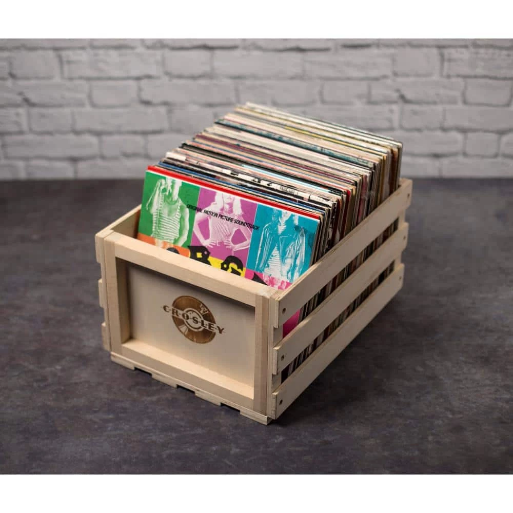 Go crate-digging through your own collection with Crosley’s rustic natural wooden record crate. Fire-branded with the iconic Crosley logo, this lightweight crate gives plenty of room to fill it with precious LPs. Able to hold 75 Albums.