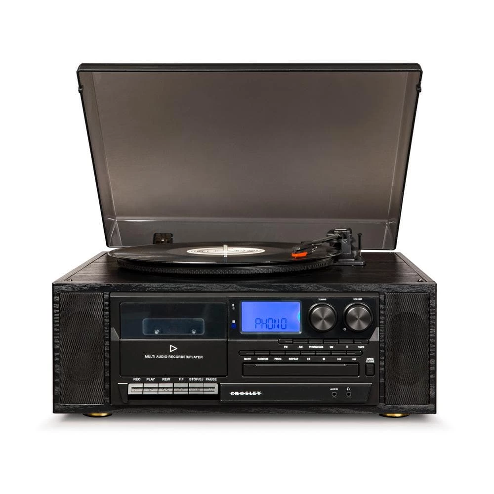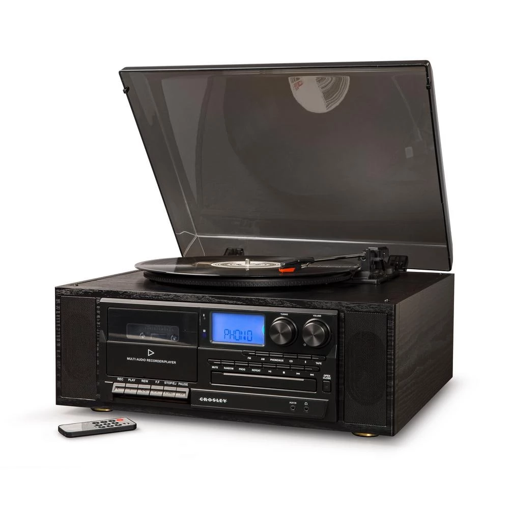 If your parents had an all-in-one turntable in high school, it probably looked similar to the Crosley Ridgemont (which is pretty gnarly if you ask us). Inspired by the early 80s, this system was designed with entertainment in mind and includes everything you need to get the house party started all in 1 unit. The Ridgemont offers 6 different ways to play music: 3-speed record player (33-1/3, 45, 78 RPM), cassette player, radio, CD player, aux in and a Bluetooth receiver so you can stream your digital music through the built-in stereo speakers. Of course, if you really want to jam, there’s an RCA output on the back of the unit that allows you to easily hook the Ridgemont up to an existing stereo system or powered speakers. Other features include a headphone jack, queuing lever and a smokey lid that helps keep dust off your vinyl records.