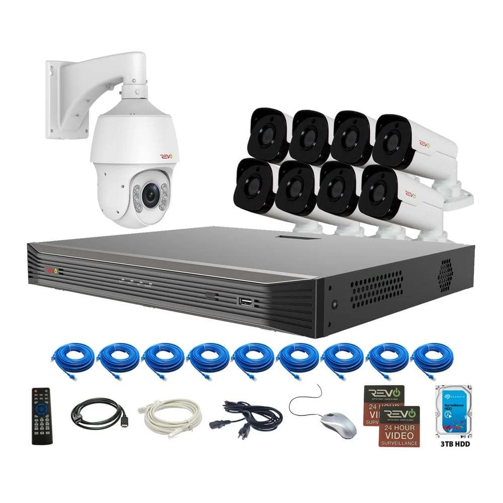 With incredible video quality, ease of use, and powerful networking tools, Revo Ultra is the very best that Revo has to offer. The Revo Ultra’s superb video quality is based on IP technology. The RU162PTZBNDL-1 is a complete plug and play SMART HD surveillance system with 16 CH 4K NVR, 3TB and 8x 4MP HD Bullet Cameras and 1x 22x 1080p PTZ camera. The REVO ULTRA 4K 16CH NVR is powerful featuring H.265 Compression, up to 4K Recording and 4K video output. Bullet Cameras feature massive 4 MP Sensors, 2 times the resolution of standard 1080p. The built-in Professional Grade LEDs and IR anti reflection glass strongly illuminate the scene up to an unprecedented 100 ft. in total darkness. The RUCB36-1 Camera features a 4mm fixed lens that provides an 80 wide angle of view. The cameras are built for the outdoors capable of handling temperatures as hot as 140F and as cold as -40F. The PTZ camera with a wall mount features 1080p resolution, 22x Optical Zoom, 360 Pan Range and -15 to +90 Tilt Range and delivers incredible video quality with the added powerful ability to zoom in and out remotely, endless Pan Range and incredible Tilt Range. The camera comes equipped with 5th generation infrared technology. The IR arrays strongly and evenly illuminate the scene up to an unprecedented 500 feet in total darkness. The polished look and intuitive feel of the Ultra’s interface is a joy for everyday use whether you’re using the NVR itself, the Mobile App, Computer Software or Browser.