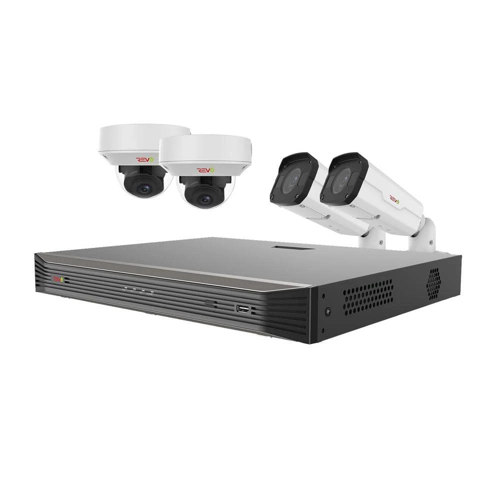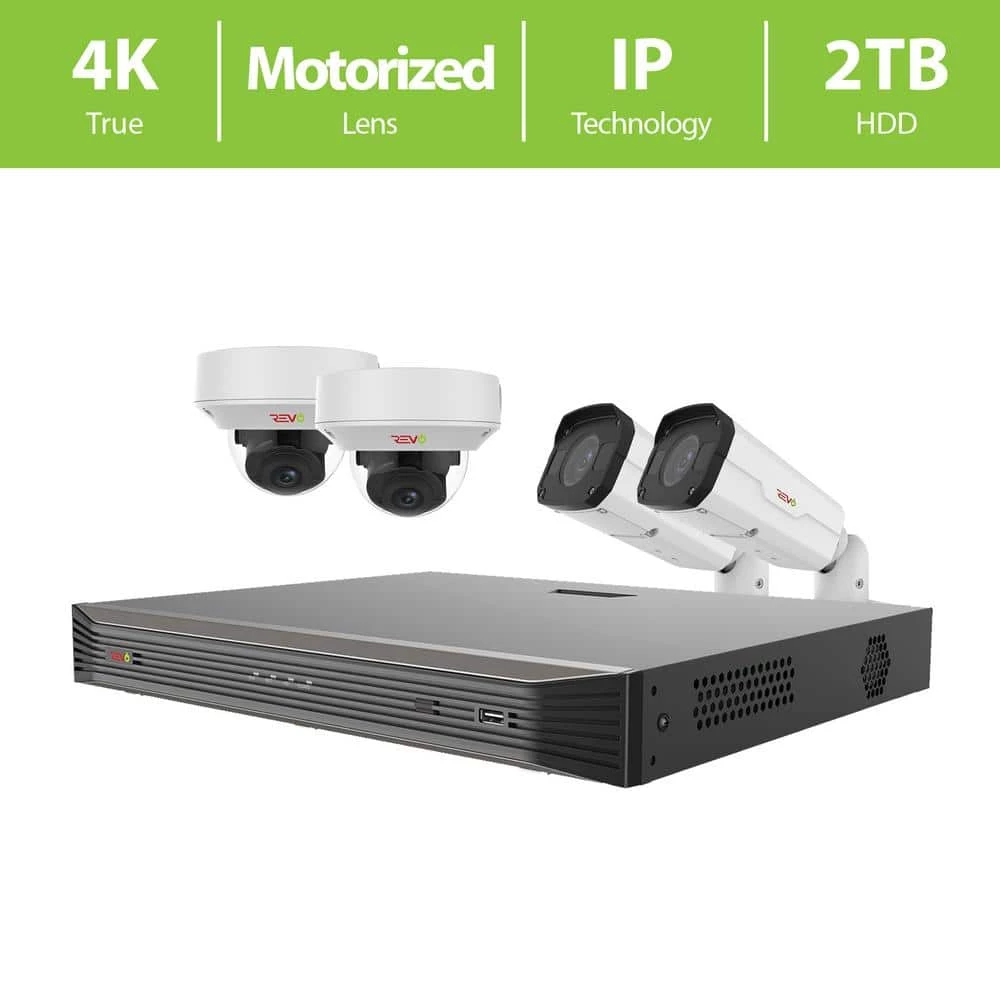 With incredible video quality, ease of use and powerful networking tools, Revo Ultra is the very best that Revo has to offer. The Revo Ultra’s superb video quality is based on IP technology. The RU82A4KBNDL-1 is a complete plug and play SMART HD surveillance system with 8-Channel 4K NVR, 2TB and 4x 4K HD Indoor/outdoor Motorized Cameras. The Revo ULTRA 8CH NVR is powerful featuring state of the art H.265 Compression, up to 4K Recording, 4K video output and 2TB Video Surveillance Grade HDD. The H.265 Indoor/Outdoor cameras feature massive True 4K Sensors, 2 times the resolution of 4MP Cameras. The built-in Professional Grade OSRAM LED’s and IR anti reflection glass strongly illuminate the scene up to an unprecedented 175 in total darkness. The cameras feature 4X optical Zoom and a 2.8 mm to 12 mm automatic lens allows convenient adjustment of the field of view (47 to 115) of the camera. The cameras are built for the outdoors capable of handling temperatures as cold -40°F and as hot as 140°F. View your Revo Ultra 4K cameras from anywhere. Using the Revo Ultra Mobile smartphone app, simply set up an account and then scan your NVRs QR code to begin mobile viewing. Pre-event recording includes video before motion is detected providing valuable context leading up to the incident. Experience Peace of Mind with the ultimate high resolution IP technology from Revo.