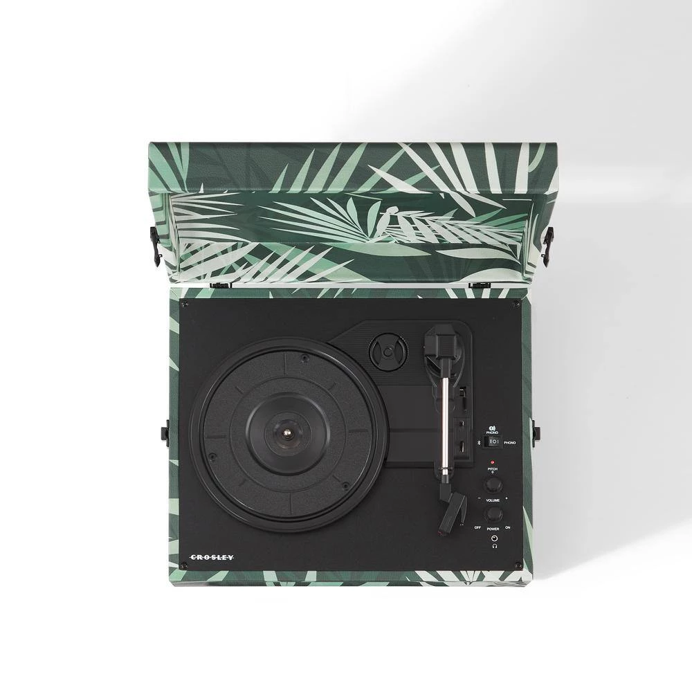 Welcome to the jungle. You’ll experience nothing but fun and games with the verdant botanical vibes of this versatile Voyager turntable. The clean, vintage-inspired aesthetic fits into any space, while the lightweight design allows for easy portability. Spin 33 1/3, 45 or 78 RPM records or use the built-in Bluetooth receiver to transmit your digital music wirelessly through the turntable’s stereo speakers. The RCA outputs on the back allow you to easily plug in to your existing music system or external speakers if you need some extra power. No matter how you choose to listen, get ready to set sail on a tropical listening adventure with the Crosley Voyager in Botanical.