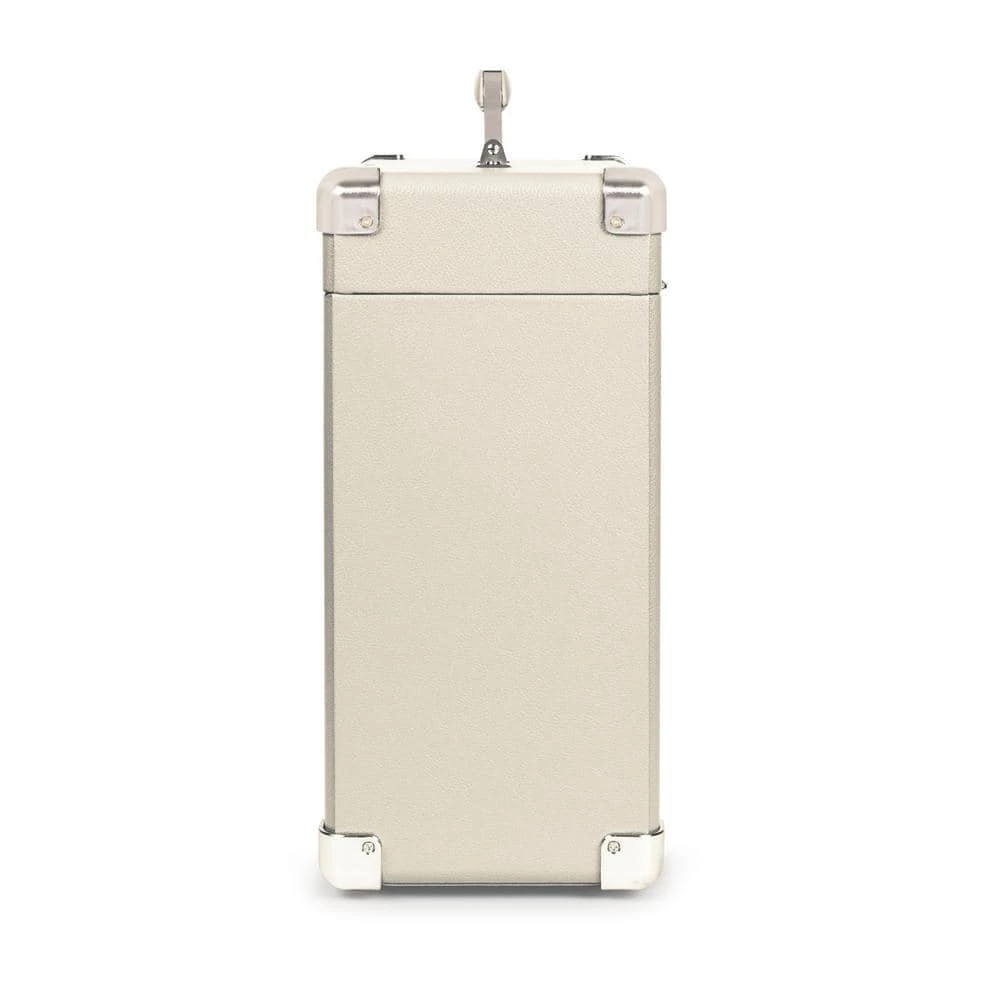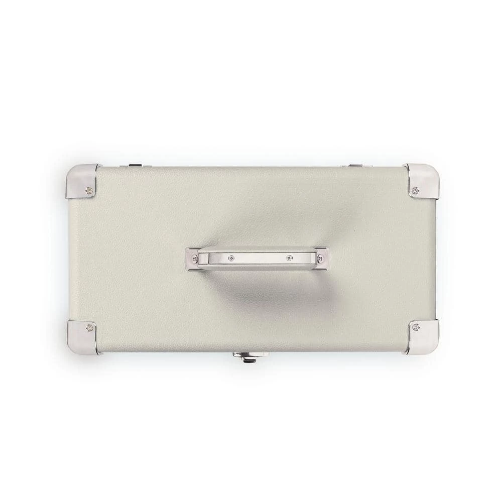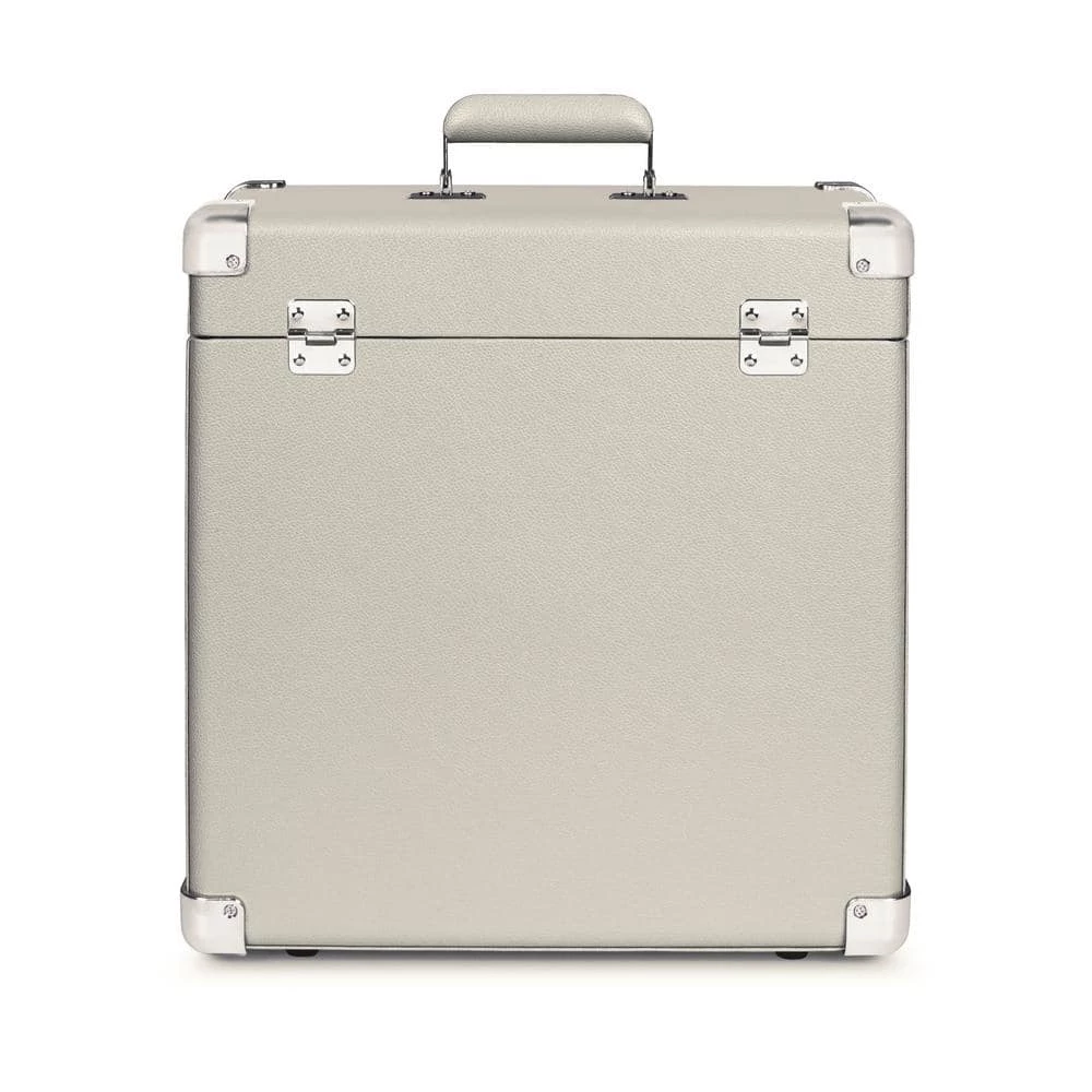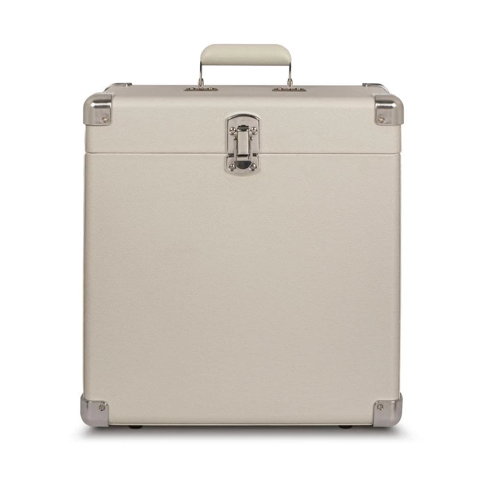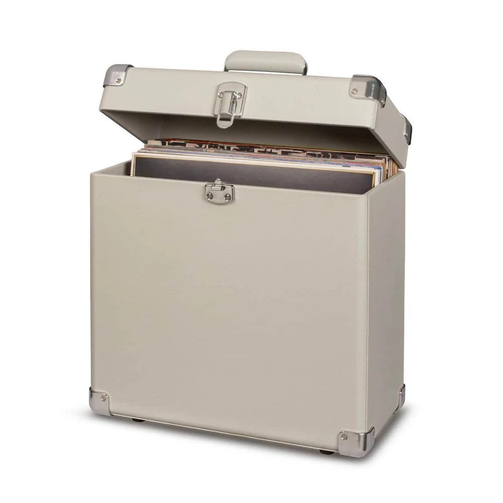 Stash and tote your precious vinyl LP records with this handy faux leather carry case. Heavy-duty latches and hinges will keep discs safe and secure. White wash color.